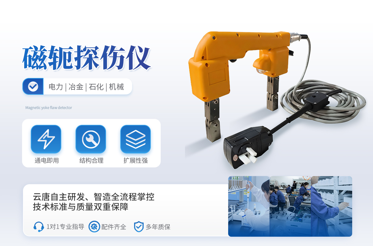 YT-CTS220交流磁軛探傷儀 ,無主機設(shè)計,操作簡單方便,噪音小、重量小、適用性強,工作穩(wěn)定。適用于電力、冶金、石化、機械等行業(yè)各類鋼鐵結(jié)構(gòu)件,鍋爐、壓力容器、壓力管道及各類型焊接結(jié)構(gòu)的鐵磁性材料表層及近表層缺陷的磁粉探傷。該探傷儀可以直接連接交流電使用,也可以選配交流磁化電源和直流磁化電源使用,**輕便。特別適用于船體焊縫檢測、高空鋼結(jié)構(gòu)焊縫檢測及壓力容器內(nèi)部作業(yè)。