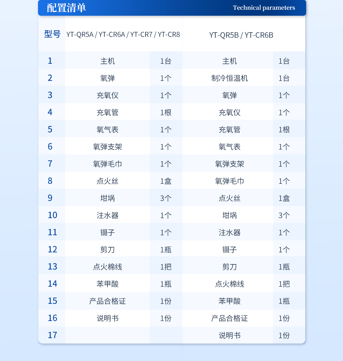 | 主機 1臺 | 氧彈 1個 | 充氧儀 1個 | 充氧管 1根 | 氧氣表 1個 | 氧彈支架 1個 | 氧彈毛巾 1個 | 點火絲 1盒 | 坩堝 3個 | 注水器 1個 | 鑷子 1個 | 剪刀 1瓶 | 點火棉線 1把 | 苯甲酸 1瓶 | 產(chǎn)品合格證 1份 | 說明書 1份 |