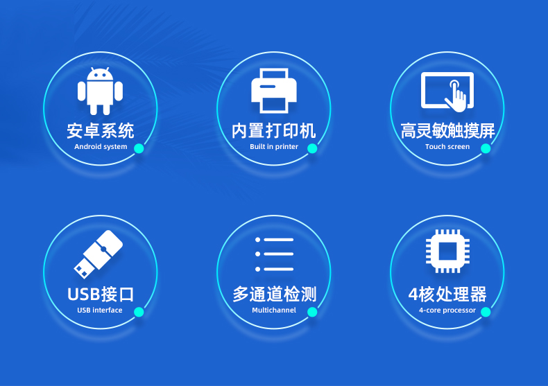 | 安卓智能操作系統(tǒng),采用更加**的UI交互界面,儀器具有wifi聯(lián)網(wǎng)上傳、4G聯(lián)網(wǎng)傳輸、GPRS無線遠傳、網(wǎng)線連接功能,快速批量上傳數(shù)據(jù)。 | 智能化程度高,儀器具有自檢功能:具有開機自檢和調(diào)零功能,具有自動檢測重復性功能。 | 新一代高速熱敏打印機,檢測完成可自動打印或批量打印檢測報告和二維碼。 | 儀器帶有監(jiān)管平臺,數(shù)據(jù)可局域網(wǎng)和互聯(lián)網(wǎng)數(shù)據(jù)上傳,檢測結果直接傳至食品安全監(jiān)管平臺。進行區(qū)域食品安全監(jiān)管及大數(shù)據(jù)分析處理與數(shù)據(jù)統(tǒng)計,檢測區(qū)域食品安全長短期動態(tài),達到食品安全問題預估、預警 | 一體化主機,包含食品安全檢測模塊、多通道農(nóng)藥殘留檢測模塊、膠體金免疫層析檢測模塊。 | 一體化便攜式快檢設備,滿足現(xiàn)場及流動檢測使用需求,能夠在同一軟件下實現(xiàn)所有檢測項目的檢測,并可通過同一窗口直觀顯示檢測結果。 | 膠體金模塊檢測方式:軌道式自動傳輸掃描,檢測完成后自動退出檢測卡。 | CT線自動識別,無需手動調(diào)整。 | 內(nèi)置強大的數(shù)據(jù)庫,具有多品類多種類樣品菜單功能,可靈活選擇檢測樣品,不同的檢測通道可同時檢測不同的樣品項目。也可在儀器上直接編輯錄入樣品名稱、檢測指標、送檢單位等信息并保存進樣品數(shù)據(jù)庫。 | 產(chǎn)品內(nèi)置操作演示視頻,是您身邊的化驗指導專家。 | 樣品處理簡單省力,整體操作快速、安全、便捷。 | 儀器具有自身保護功能,可設置用戶名及密碼,防止非工作人員操作等。 | 高靈敏度,高檢測精度,高重復性精度,掃描式高精度光學傳感器。 | 結果判定線可修改,對照值標定值可保存,斷電不丟失數(shù)據(jù)。 | 兼容市場上所有的膠體金卡,使用耗材不受限制,極大增強用戶使用體驗。 | 儀器具有重新校準、鎖定、恢復出廠設置功能。 |