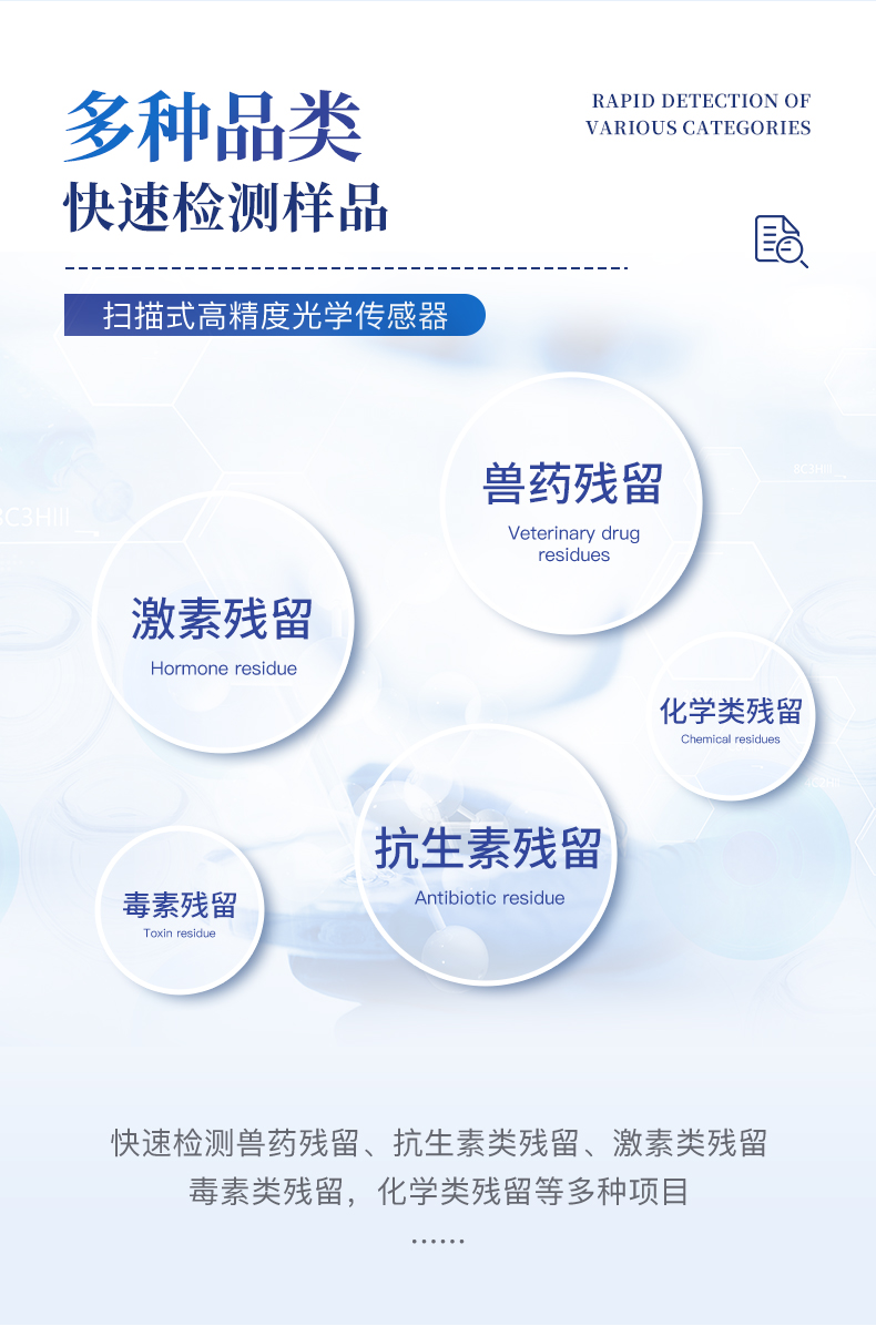 8、儀器具有品類(lèi)多種類(lèi)樣品菜單庫(kù),可靈活選擇檢測(cè)樣品,不同的檢測(cè)通道可同時(shí)檢測(cè)不同的樣品項(xiàng)目。