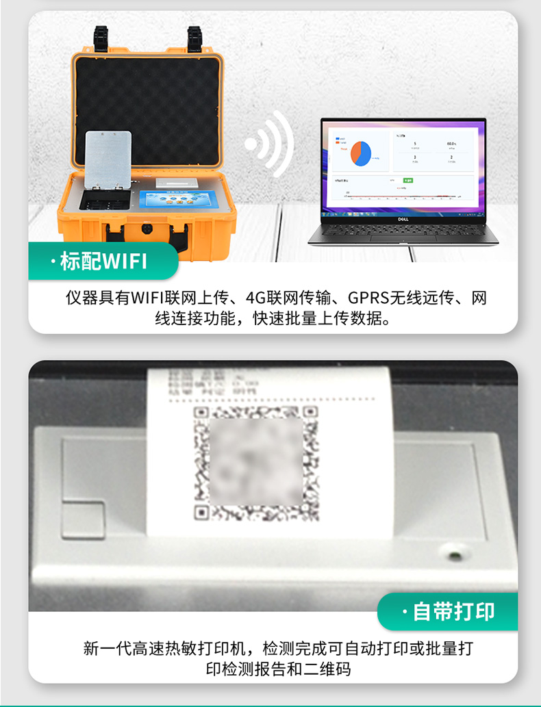 3、新一代高速熱敏打印機(jī),檢測完成可自動(dòng)打印或批量打印檢測報(bào)告和二維碼。