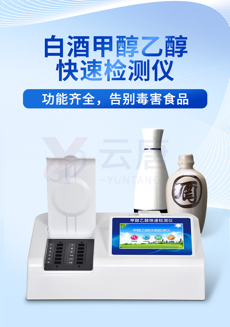可快速定量檢測各類酒中的甲醇和乙醇的含量,儀器預留其他項目檢測程序和端口,根據(jù)日后需求可方便的自主增加檢測項目。日后可升級為檢測,水產品,肉制品,面制品的綜合類型儀器。