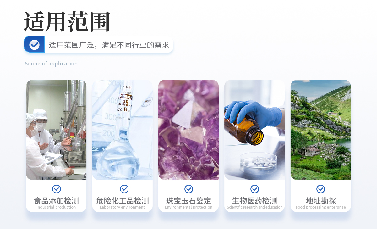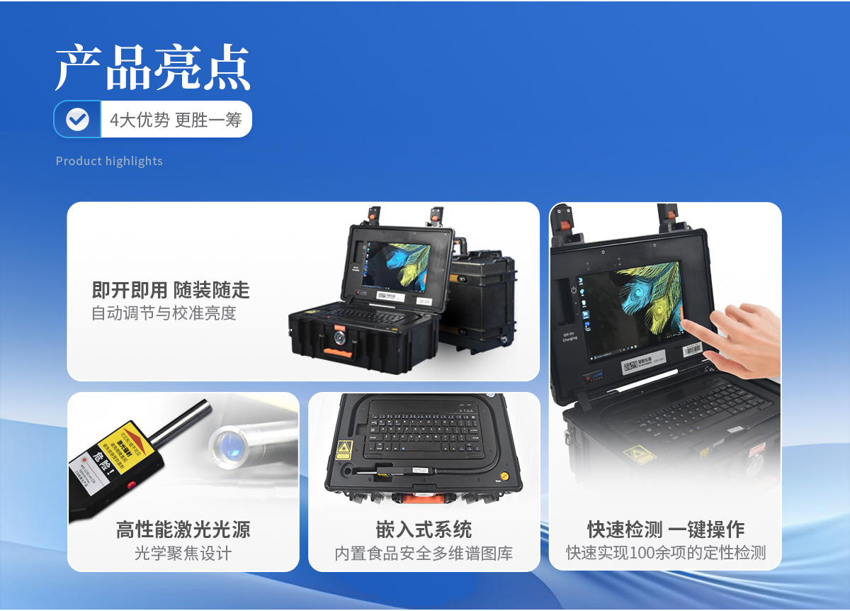 食品違禁添加物、色素添加、農(nóng)獸藥殘留檢測 爆炸物、危險化工品、易燃易爆品檢測 珠寶玉石鑒定、文物鑒別 生物醫(yī)藥檢測、材料表征、地址勘探等 其他各類訂制應用