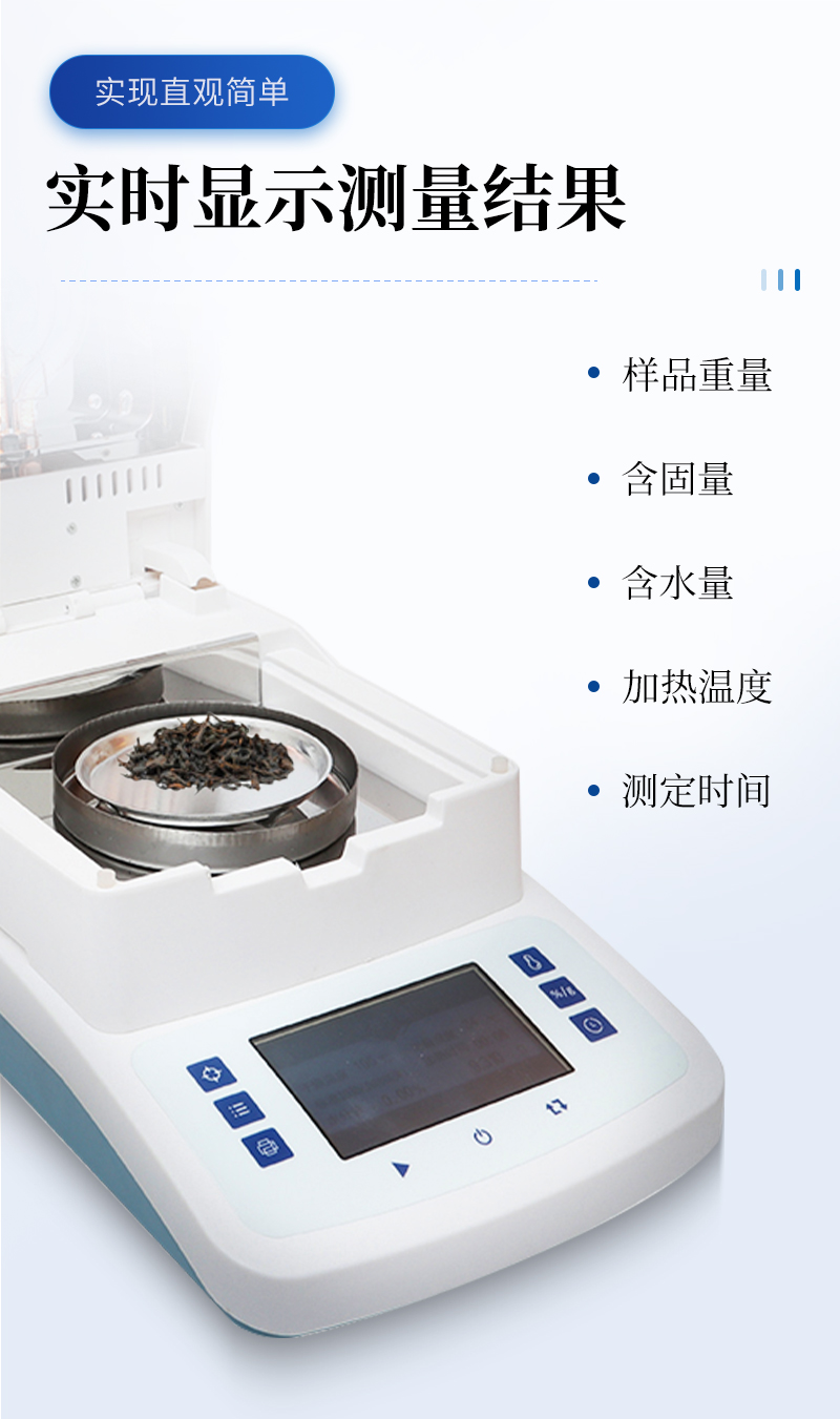 環(huán)狀的鹵素燈確保樣品得到均勻加熱,操作簡便、測量準確。水分測定儀在測量樣品重量的同時,儀器采用環(huán)形管鹵素加熱方式,快速干燥樣品,在干燥過程中,水分儀持續(xù)測量并即時顯示樣品丟失的水分含量%,干燥程序完成后,*終測定的水分含量值被鎖定顯示。與國際烘箱加熱法相比,鹵素加熱可以在高溫下將樣品均勻地快速干燥,樣品表面不易受損,其檢測結果與國標烘箱法具有良好的一致性,具有可替代性,且檢測效率遠遠高于烘箱法。智能化操作,一般樣品只需幾分鐘即可完成測定。該儀器操作簡單,測試準確,顯示部分采用液晶顯示屏-使屏幕更加清晰明亮,示值清晰可見,分別可顯示水分值,樣品初值,終值,測定時間,溫度初值,*終值等數(shù)據(jù),并具有與計算機,打印機連接功能、符合GLP規(guī)范的打印數(shù)據(jù)輸出。