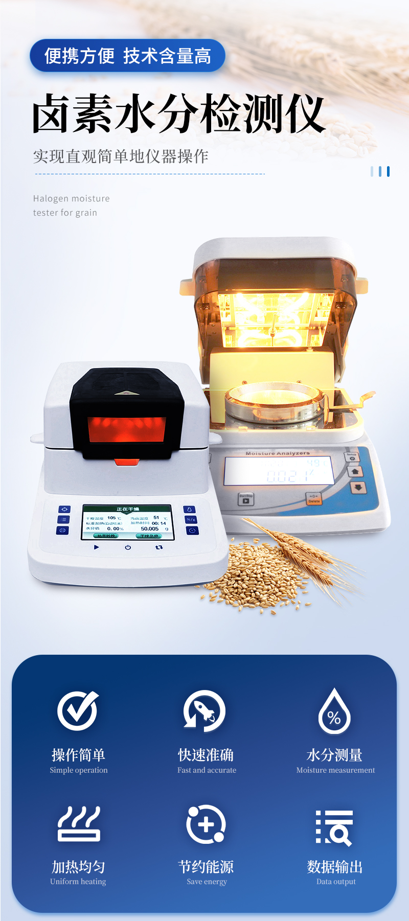 該系列快速水分測定儀應(yīng)用了國際烘箱干燥法原理,測定結(jié)果與烘箱法水分測定具有良好的一致性,工作效率卻遠遠高于烘箱法水分測定,一般樣品只需要幾分鐘即可測量完畢,因此受到廣大用戶的青睞與好評。