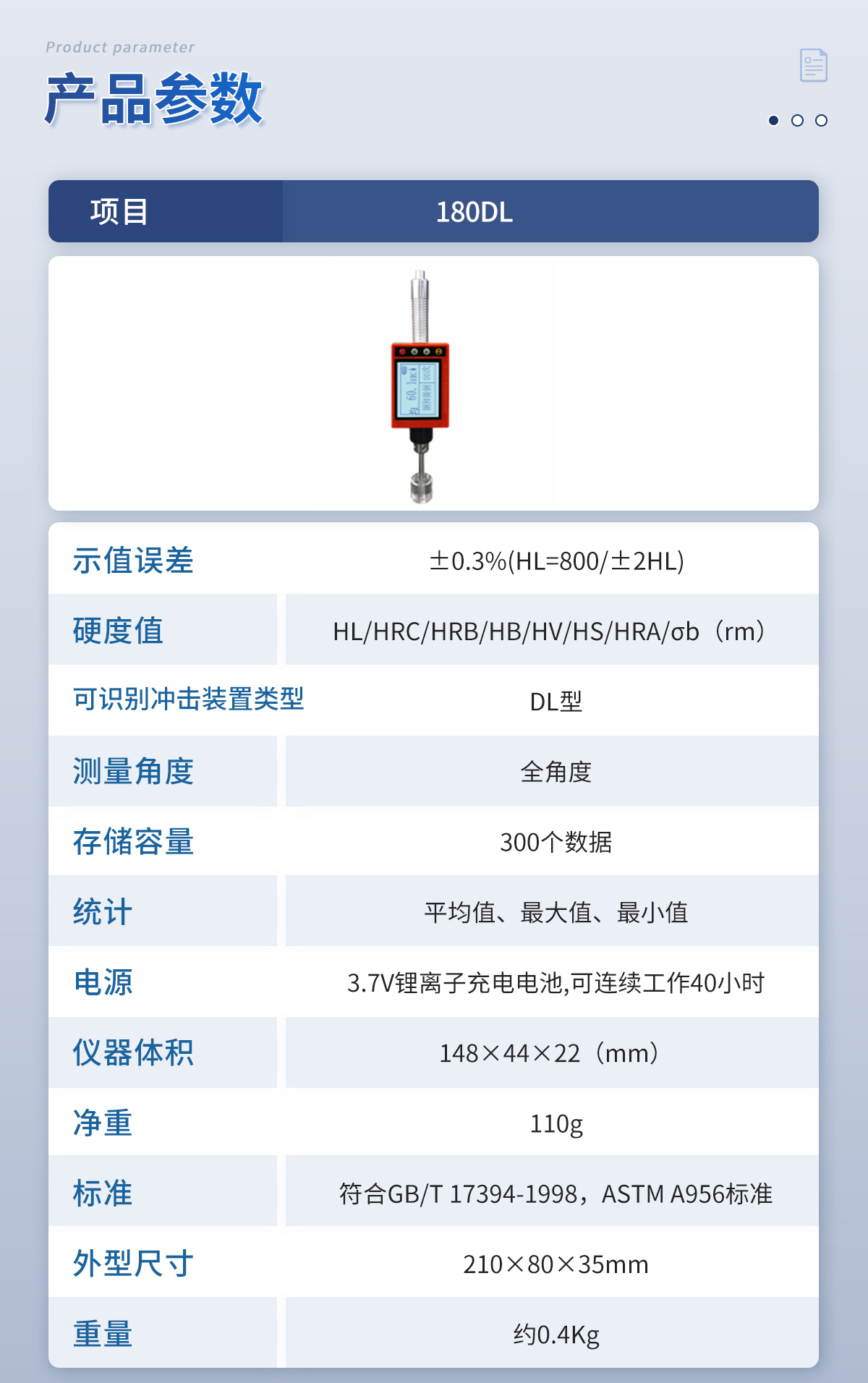 筆式里氏硬度計(jì) YT-180DL 技術(shù)參數(shù)