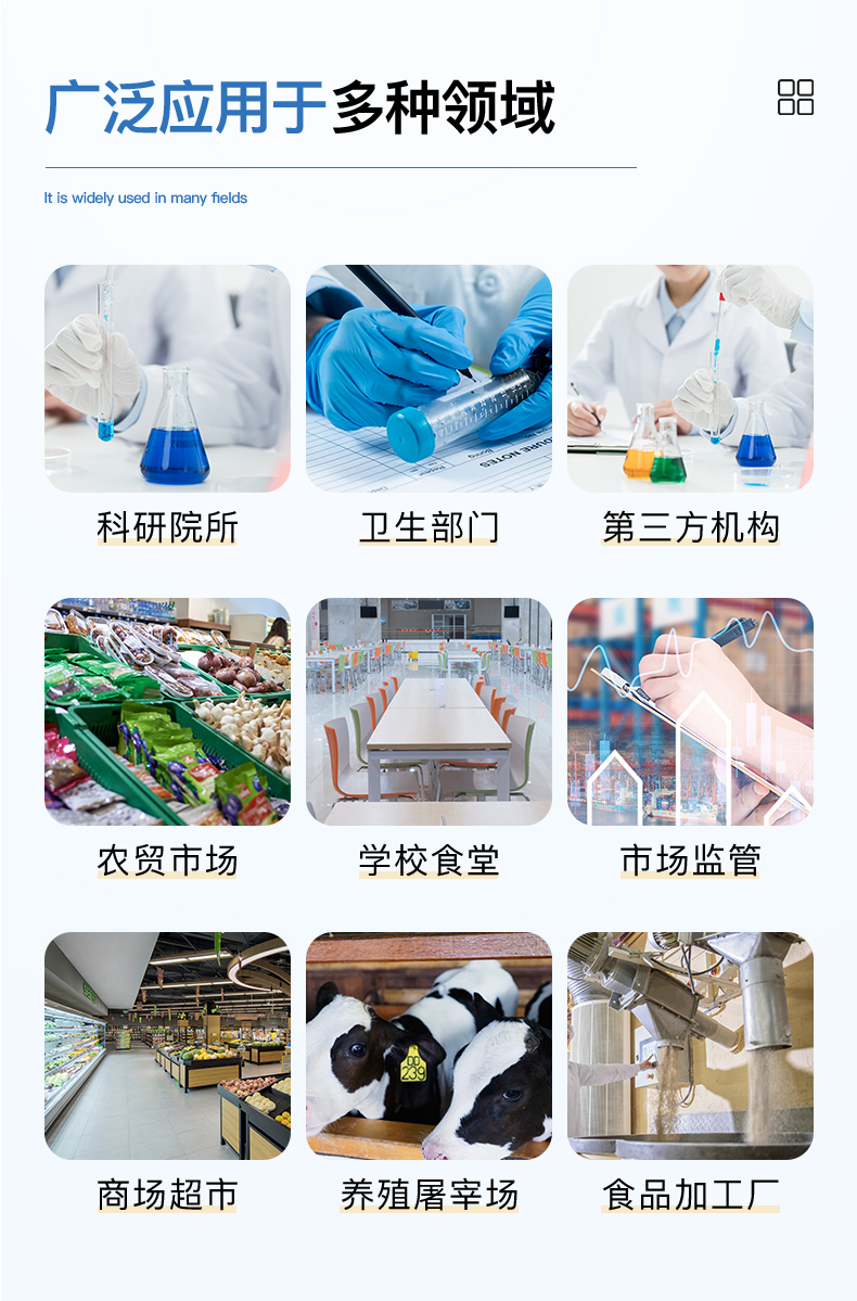 農產品安全檢測儀三合一可快速檢測200多項目,包含非食用化學物質、濫用食品添加劑、農藥殘留、獸藥殘留、重金屬、病害肉、營養(yǎng)強化劑、抗生素類殘留、激素類殘留、真菌毒素類殘留、化學類殘留等現(xiàn)場的定性定量檢測。該設備為集成化食品安全快速檢測分析設備,廣泛應用于市場監(jiān)管局、檢測中心、衛(wèi)生監(jiān)督部門、農業(yè)部門、院校及各單位食堂、食品肉產品深加工企業(yè)、商超市場、司法部門、餐飲機構、養(yǎng)殖場、屠宰場、檢驗檢疫部門等單位使用。