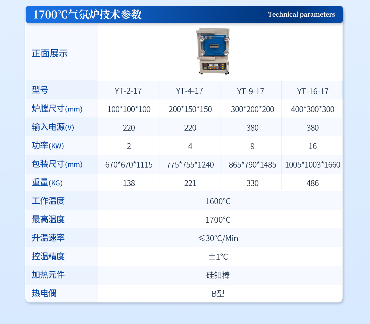 | SA2-16-17TP | 1700℃ | 400*300*300 | 380V/16KW | 1005*1003*1660mm,486KG |