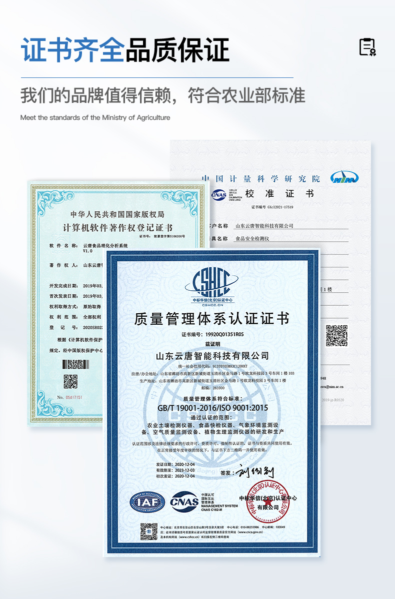| 安卓智能操作系統(tǒng),采用更加**和人性化操作,儀器具有網(wǎng)線連接、wifi聯(lián)網(wǎng)上傳、GPRS無線遠(yuǎn)傳功能,快速上傳數(shù)據(jù)。 | 智能化程度高,儀器具有自檢功能:具有開機(jī)自檢和調(diào)零功能,具有自動(dòng)檢測重復(fù)性功能。 | 檢測通道:≥12個(gè)檢測通道,可以同時(shí)測試多個(gè)樣品,每個(gè)樣品由程序控制分別獨(dú)立工作,不會(huì)互相干擾。 | 顯示方式:≥8英寸液晶觸摸屏顯示,人性化中文操作界面,讀數(shù)直觀、簡單。 | 配備新一代嵌入式熱敏打印機(jī),可選擇手動(dòng)打印或者自動(dòng)打印,檢測完成可自動(dòng)打印檢測報(bào)告和二維碼。 | 光源采用進(jìn)口超高亮發(fā)光二極管,高精度、穩(wěn)定性強(qiáng)、光源可控、可以關(guān)掉不使用的光源,功耗更低。 | 采用USB2.0接口設(shè)計(jì),方便數(shù)據(jù)的存貯和移動(dòng),并可隨時(shí)與計(jì)算機(jī)直接相連,并且可用計(jì)算機(jī)控制儀器。實(shí)現(xiàn)數(shù)據(jù)查詢、瀏覽、分析、統(tǒng)計(jì)、打印等。 | 儀器帶有監(jiān)管平臺(tái)。數(shù)據(jù)可局域網(wǎng)和互聯(lián)網(wǎng)數(shù)據(jù)上傳,檢測結(jié)果直接傳至食品安全監(jiān)管平臺(tái)。進(jìn)行區(qū)域食品安全監(jiān)管及大數(shù)據(jù)分析處理,檢測區(qū)域食品安全長短期動(dòng)態(tài),達(dá)到食品安全問題預(yù)估、預(yù)警 | 一體化便攜式快檢設(shè)備,滿足現(xiàn)場及流動(dòng)檢測使用需求,能夠在同一軟件下實(shí)現(xiàn)所有檢測項(xiàng)目的檢測,并可通過同一窗口直觀顯示檢測結(jié)果。 | 儀器具有多品類多種類樣品菜單庫,可靈活選擇檢測樣品,不同的檢測通道可同時(shí)檢測不同的樣品項(xiàng)目。也可在儀器上直接編輯錄入樣品名稱、檢測指標(biāo)、送檢單位等信息并保存進(jìn)樣品數(shù)據(jù)庫。 | 樣品處理簡單省力,整體操作快速、安全、便捷。 | 儀器具有自身保護(hù)功能,可設(shè)置用戶名及密碼,防止非工作人員操作等。 | 高靈敏度,高檢測精度,高重復(fù)性精度,掃描式高精度光學(xué)傳感器。 | 內(nèi)置強(qiáng)大的數(shù)據(jù)庫,可在儀器上直接選擇樣品名稱、檢測指標(biāo)、送檢單位等信息,也可在儀器上直接編輯錄入樣品名稱、檢測指標(biāo)、送檢單位等信息并保存進(jìn)樣品數(shù)據(jù)庫。 | 儀器具有重新校準(zhǔn)、鎖定、恢復(fù)出廠設(shè)置功能。 | 支持U盤存儲(chǔ)。 結(jié)果判定線可修改,對照值標(biāo)定值可保存,斷電不丟失數(shù)據(jù)。 |