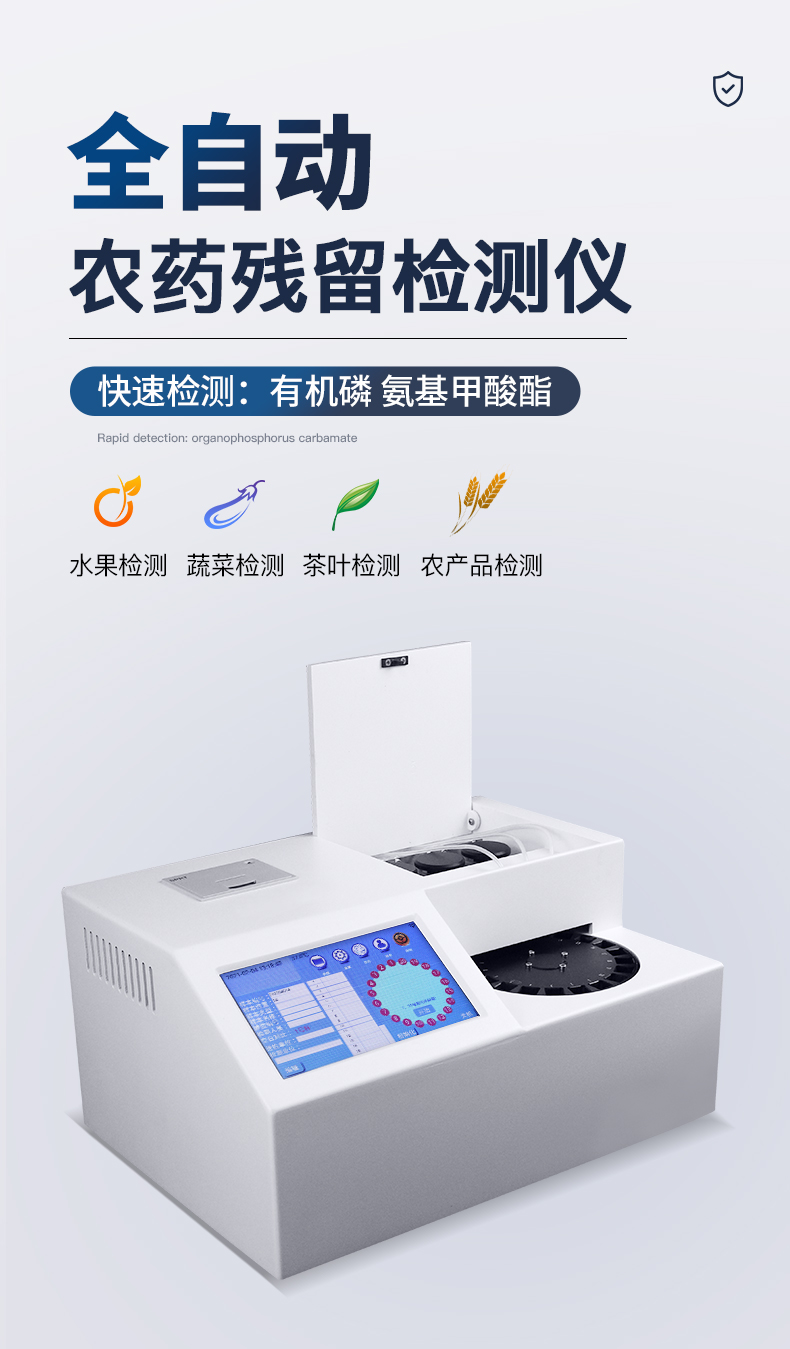 云唐全自動農(nóng)藥殘留檢測儀YT-NY2000,檢測標(biāo)準(zhǔn):依據(jù)國家標(biāo)準(zhǔn)方法(GB/T5009.199-2003)以及世界衛(wèi)生組織WHO、世界糧農(nóng)組織FAO殘留農(nóng)藥檢測標(biāo)準(zhǔn)、世界環(huán)境保護(hù)局EPA參照攝入量等要求來設(shè)計(jì)。采用酶抑制率比色法對水果、蔬菜等農(nóng)林產(chǎn)品中有機(jī)磷和氨基甲酸酯類農(nóng)藥含量進(jìn)行快速準(zhǔn)確的檢測。