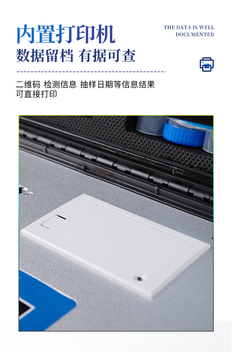 | 安卓智能操作系統(tǒng),采用更加**UI交互界面,儀器具有wifi聯(lián)網(wǎng)上傳、4G聯(lián)網(wǎng)傳輸、GPRS無(wú)線遠(yuǎn)傳、網(wǎng)線連接功能,快速批量上傳數(shù)據(jù)。 | 智能化程度高,儀器具有自檢功能:具有開(kāi)機(jī)自檢和調(diào)零功能,具有自動(dòng)檢測(cè)重復(fù)性功能。 | 新一代高速熱敏打印機(jī),檢測(cè)完成可自動(dòng)打印檢測(cè)報(bào)告和二維碼。 | 儀器帶有監(jiān)管平臺(tái),數(shù)據(jù)可局域網(wǎng)和互聯(lián)網(wǎng)數(shù)據(jù)上傳,檢測(cè)結(jié)果直接傳至食品安全監(jiān)管平臺(tái)。進(jìn)行區(qū)域食品安全監(jiān)管及大數(shù)據(jù)分析處理與數(shù)據(jù)統(tǒng)計(jì),檢測(cè)區(qū)域食品安全長(zhǎng)短期動(dòng)態(tài),達(dá)到食品安全問(wèn)題預(yù)估、預(yù)警 | 一體化便攜式快檢設(shè)備,滿足現(xiàn)場(chǎng)及流動(dòng)檢測(cè)使用需求,能夠在同一軟件下實(shí)現(xiàn)所有檢測(cè)項(xiàng)目的檢測(cè),并可通過(guò)同一窗口直觀顯示檢測(cè)結(jié)果。 | 膠體金模塊檢測(cè)方式:軌道式自動(dòng)傳輸掃描,檢測(cè)完成后自動(dòng)退出檢測(cè)卡。 | 一體化主機(jī),包含食品安全檢測(cè)模塊、多通道農(nóng)藥殘留檢測(cè)模塊、膠體金免疫層析檢測(cè)模塊。 | CT線自動(dòng)識(shí)別,無(wú)需手動(dòng)調(diào)整。 | 儀器具有品類(lèi)多種類(lèi)樣品菜單庫(kù),可靈活選擇檢測(cè)樣品,不同的檢測(cè)通道可同時(shí)檢測(cè)不同的樣品項(xiàng)目。。 | 樣品處理簡(jiǎn)單省力,整體操作快速、安全、便捷。 | 儀器具有自身保護(hù)功能,可設(shè)置用戶名及密碼,防止非工作人員操作等。 | 高靈敏度,高檢測(cè)精度,高重復(fù)性精度,掃描式高精度光學(xué)傳感器。 | 儀器具有重新校準(zhǔn)、鎖定、恢復(fù)出廠設(shè)置功能。 | 內(nèi)置強(qiáng)大的數(shù)據(jù)庫(kù),可在儀器上直接選擇樣品名稱(chēng)、檢測(cè)指標(biāo)、送檢單位等信息,也可在儀器上直接編輯錄入樣品名稱(chēng)、檢測(cè)指標(biāo)、送檢單位等信息并保存進(jìn)樣品數(shù)據(jù)庫(kù)。 | 儀器具有重新校準(zhǔn)、鎖定、恢復(fù)出廠設(shè)置功能。 | 結(jié)果判定線可修改,對(duì)照值標(biāo)定值可保存,斷電不丟失數(shù)據(jù)。 | 兼容市場(chǎng)上所有的膠體金卡,使用耗材不受限制,極大增強(qiáng)用戶使用體驗(yàn)。 |