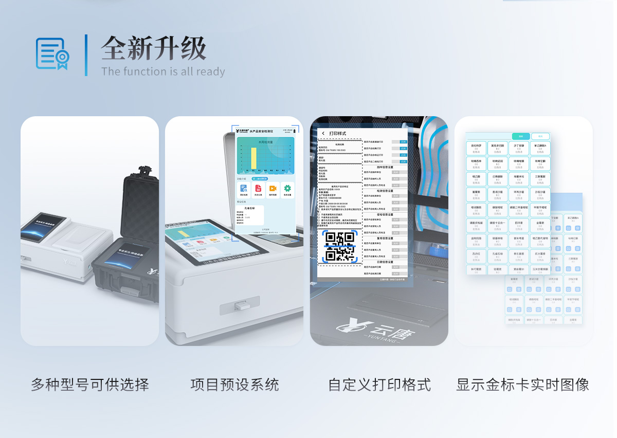 | 儀器采用10.1英寸液晶觸摸屏顯,搭配運行安卓智能操作系統(tǒng),主控芯片采用ARM Cortex-A7,RK3288/4核處理器,主頻1.88Ghz,運轉(zhuǎn)速度更快速,性能更強。 | 儀器功能包括:膠體金檢測模塊、數(shù)字化管理模塊、無線通訊模塊等,可以滿足同一軟件下實現(xiàn)所有檢測項目的檢測,并在同一窗口展示檢測結(jié)果。 | 一體化便攜式快檢設(shè)備,采用交直流兩用供電方式,可連接車載電源,配備6ah大容量充電鋰電池,可以滿足現(xiàn)場及流動檢測使用的需求。儀器尺寸:43×35×20cm, 主機凈重:5.1kg | 系統(tǒng)自帶數(shù)據(jù)集成模塊,設(shè)備首頁自動統(tǒng)計檢測數(shù)據(jù)包含:周檢測數(shù)據(jù)、月檢測數(shù)據(jù),全部檢測總數(shù)量,均包含檢測總數(shù),合格數(shù),不合格數(shù),以及相關(guān)柱形分析圖,對各項檢測數(shù)據(jù)清晰掌握,無需電腦查詢,更加快捷直觀。 | 儀器具有任務(wù)預(yù)設(shè)模塊,可在樣品送檢前提前預(yù)設(shè)樣品名稱、檢測指標(biāo)、送檢單位等信息,樣品送檢時一鍵調(diào)取保存信息,檢測更加方便快捷。 | 軌道式自動傳輸掃描方式,可實時顯示金標(biāo)卡實時圖像,系統(tǒng)自動分析并呈現(xiàn)出CT曲線圖,CT線自動識別,無需手動調(diào)整,完成檢測后自動退出檢測卡。 | 結(jié)果判定線可修改,對照值標(biāo)定值可保存,斷電不丟失數(shù)據(jù)。 | 兼容市場上其他膠體金卡,使用耗材不受限制,極大增強用戶使用體驗。 | 儀器檢測系統(tǒng)擁有龐大數(shù)據(jù)庫,并且構(gòu)建了完善的檢索、修訂功能。食品庫涵蓋多種樣品名稱,可按需添加或刪除、編輯樣品名稱;產(chǎn)品數(shù)據(jù)庫以及歷史檢測記錄支持一鍵檢索功能。 | 系統(tǒng)打印自定義化,打印格式多樣化,產(chǎn)品合格證(國家標(biāo)準要求),二維碼,抽樣信息、檢測信息,受檢信息、復(fù)核信息、抽樣日期、檢測日期等信息結(jié)果,可按需求自行設(shè)置打印內(nèi)容。 | A4紙版本報告打印功能(可選配):設(shè)備擁有兩種結(jié)果展示方式,可以自動生成A4打印模板和小票打印模板兩種樣式,可通過WiFi及網(wǎng)線等方式鏈接外置打印機可進行打印 | 儀器具有 wifi 聯(lián)網(wǎng)上傳、RJ45網(wǎng)線連接功能,可以快速上傳數(shù)據(jù)。同步對接監(jiān)管平臺,數(shù)據(jù)可局域網(wǎng)和互聯(lián)網(wǎng)數(shù)據(jù)上傳,檢測結(jié)果直接傳至食品安全監(jiān)管平臺。進行區(qū)域食品安全監(jiān)管及大數(shù)據(jù)分析處理與數(shù)據(jù)統(tǒng)計,檢測區(qū)域食品安全長短期動態(tài),達到食品安全問題預(yù)估、預(yù)警。 | 設(shè)備支持U盤存儲,標(biāo)準USB接口,免驅(qū)動安裝。檢測結(jié)果存儲容量20萬條以上,可生成Excel表格,進行一鍵拷貝,并具有登錄保護功能,可設(shè)置用戶名及密碼,規(guī)范不同人員操作權(quán)限,防止非工作人員操作,并且可以進行重新校準、鎖定、恢復(fù)出廠設(shè)置功能。儀器固件可升級,后期檢測項目可擴充。 | 儀器具有重新校準、鎖定、恢復(fù)出廠設(shè)置功能。 | 儀器具備遠程升級功能,可定向分客戶分儀器更新,開機后自動更新,并可持續(xù)性免費更新系統(tǒng)版本,無需像傳統(tǒng)產(chǎn)品返廠更新,節(jié)省時間及人力成本并避免了物流運輸返廠升級導(dǎo)致設(shè)備損壞的潛在風(fēng)險。 |