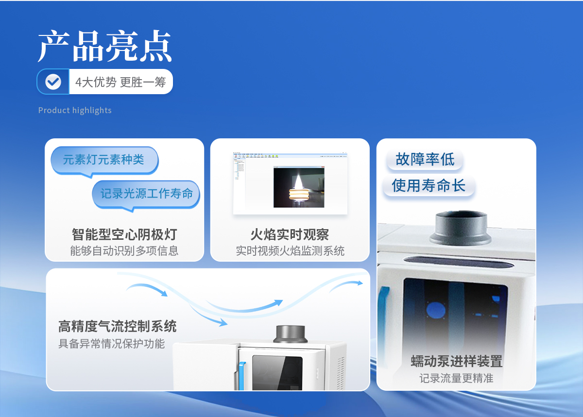 標準曲線的制作只需一個**濃度點的標準溶液,儀器可進行高濃度樣品自動稀釋、自動清洗管路等功能,極大地節(jié)省了標準樣品制備時間和使用成本。 5、火焰實時觀察