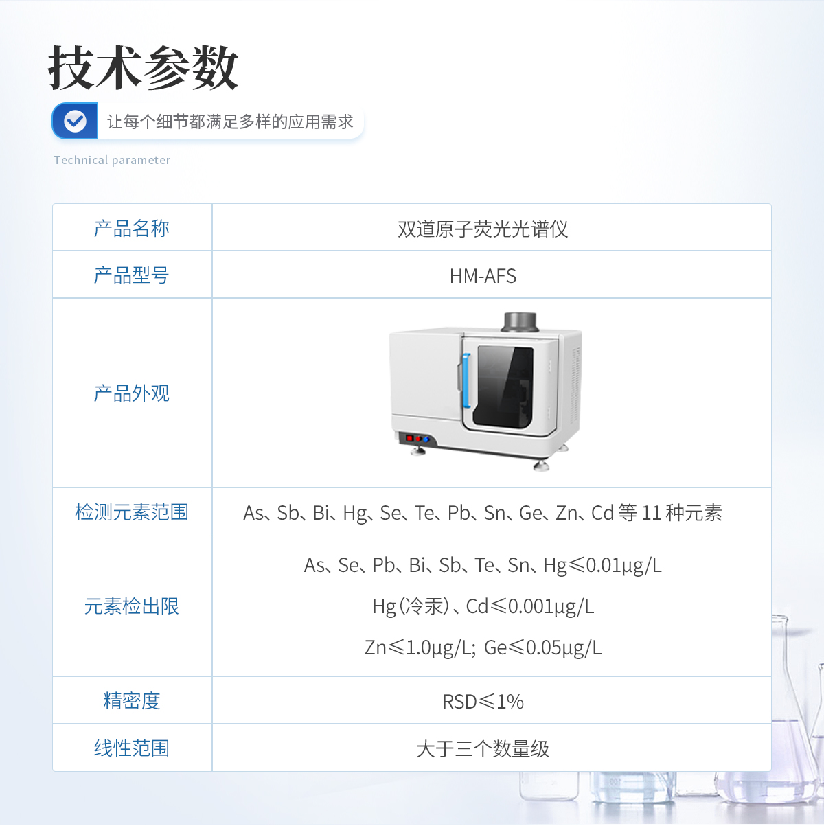原子熒光光譜儀的應(yīng)用領(lǐng)域較為廣泛,主要測試樣品中 11 種超痕量元素的含量,**檢測下限可達千億分之一級。應(yīng)用領(lǐng)域包括水質(zhì)、土壤、大氣等樣環(huán)境檢測項目、食品檢驗、檢驗檢疫、藥品檢驗、化妝品檢驗、土壤飼料肥料檢驗、地質(zhì)礦產(chǎn)測試、冶金樣品檢驗、教學(xué)研究等。