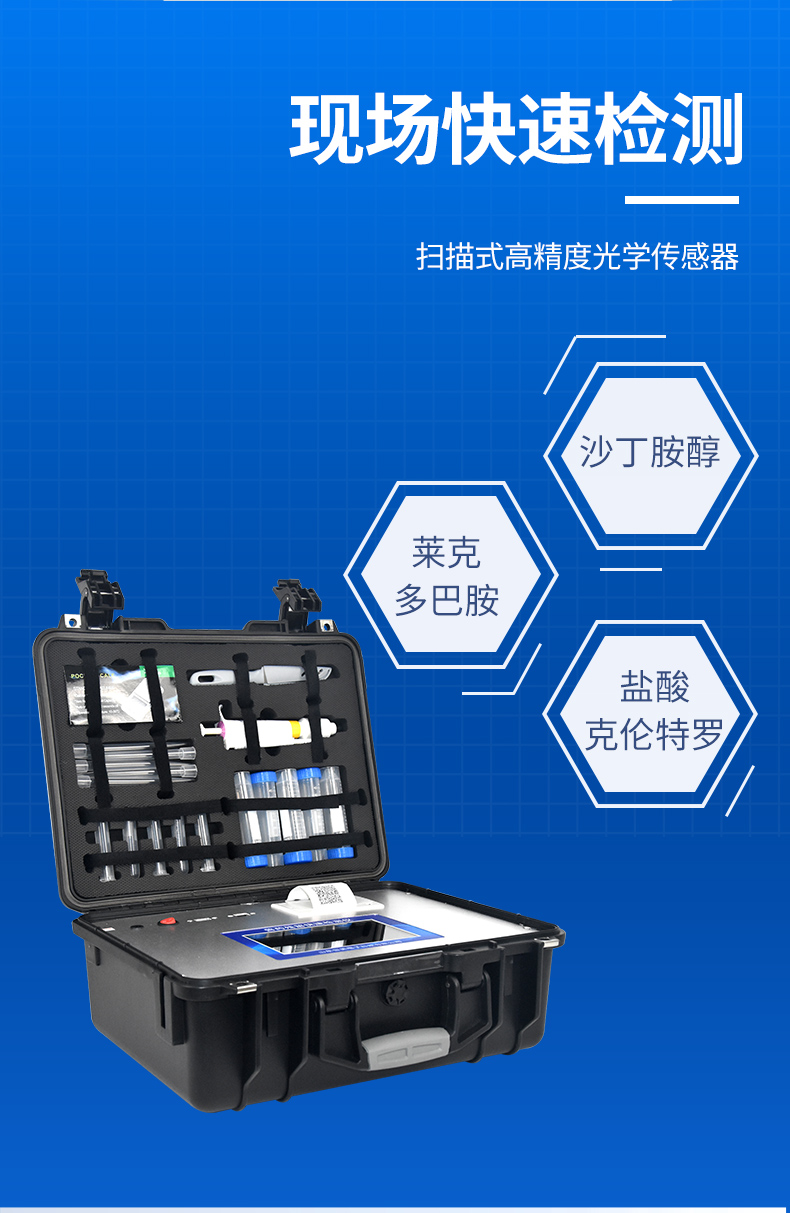 瘦肉精檢測儀可現(xiàn)場快速檢測鹽酸克倫特羅、萊克多巴胺、沙丁胺醇、己烯雌酚、喹乙醇等。儀器預(yù)留其他項目檢測程序和端口,根據(jù)日后需求可方便的自主增加檢測項目。日后可升級為檢測抗生素、獸藥殘留、動物疫病、病害肉、的綜合類型儀器