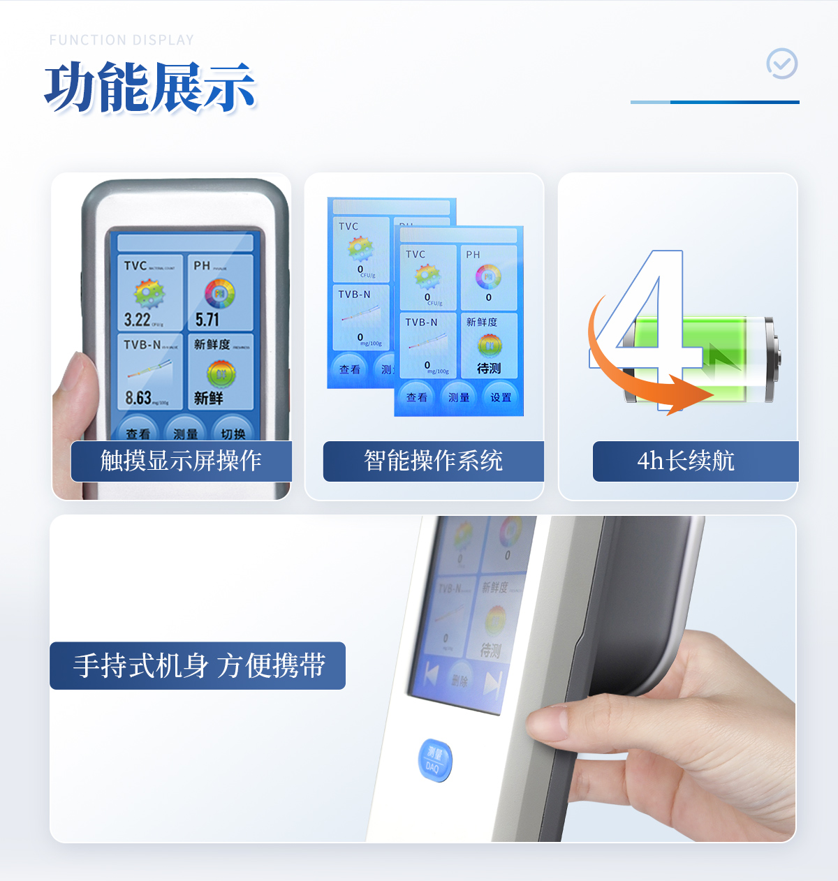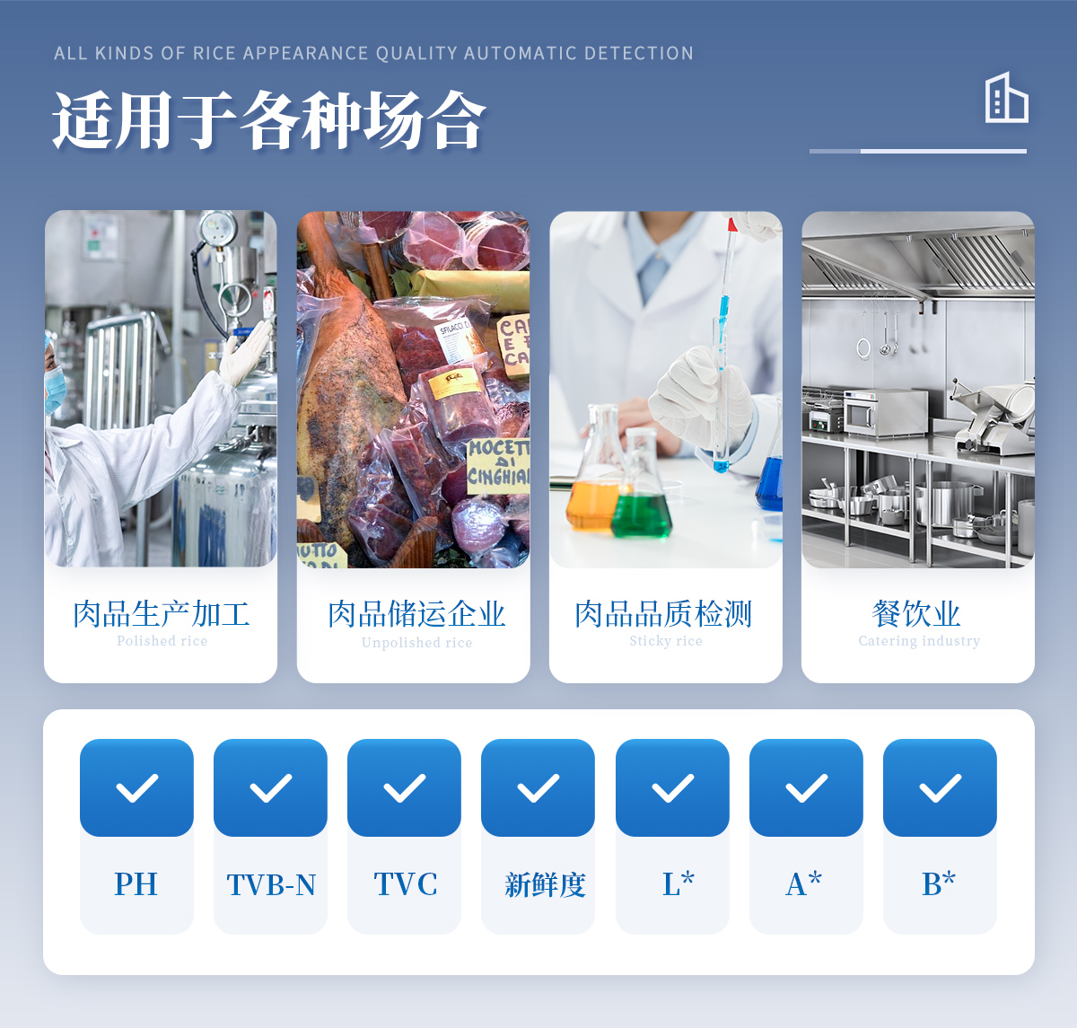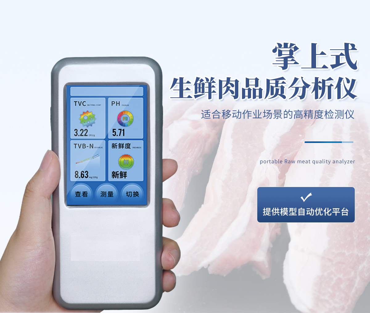 聯(lián)合中國農(nóng)業(yè)大學(xué)彭彥昆教授團(tuán)隊研發(fā)的掌上式生鮮肉新鮮度分析儀,可用于檢測生鮮肉的TVC、pH、TVB-N、新鮮度、L*、A*、B*等評價指標(biāo)。Palmarter具有體積小、便 于攜帶、性價比高等特點(diǎn),其應(yīng)用場景包括但不限于肉儲運(yùn)企業(yè)、肉品品質(zhì)監(jiān)管部門、飯店、超市、菜場、家庭等。