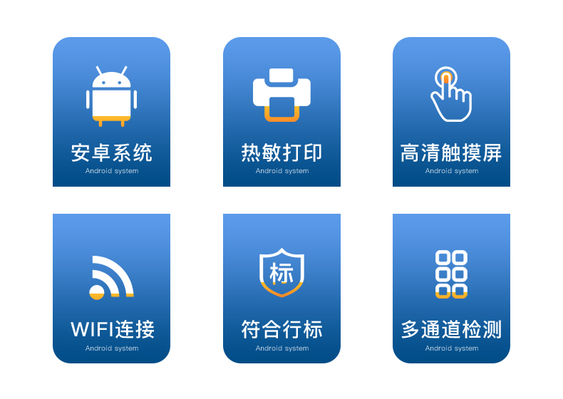 | 安卓智能操作系統(tǒng),采用更加**和人性化操作,儀器具有網(wǎng)線連接、wifi聯(lián)網(wǎng)上傳、GPRS無(wú)線遠(yuǎn)傳功能,快速上傳數(shù)據(jù)。 | 智能化程度高,儀器具有自檢功能:具有開(kāi)機(jī)自檢和調(diào)零功能,具有自動(dòng)檢測(cè)重復(fù)性功能。 | 檢測(cè)通道:≥12個(gè)檢測(cè)通道,可以同時(shí)測(cè)試多個(gè)樣品,每個(gè)樣品由程序控制分別獨(dú)立工作,不會(huì)互相干擾。 | 顯示方式:≥8英寸液晶觸摸屏顯示,人性化中文操作界面,讀數(shù)直觀、簡(jiǎn)單。 | 配備新一代嵌入式熱敏打印機(jī),可選擇手動(dòng)打印或者自動(dòng)打印,檢測(cè)完成可自動(dòng)打印檢測(cè)報(bào)告和二維碼。 | 光源采用進(jìn)口超高亮發(fā)光二極管,高精度、穩(wěn)定性強(qiáng)、光源可控、可以關(guān)掉不使用的光源,功耗更低。 | 采用USB2.0接口設(shè)計(jì),方便數(shù)據(jù)的存貯和移動(dòng),并可隨時(shí)與計(jì)算機(jī)直接相連,并且可用計(jì)算機(jī)控制儀器。實(shí)現(xiàn)數(shù)據(jù)查詢、瀏覽、分析、統(tǒng)計(jì)、打印等。 | 儀器帶有監(jiān)管平臺(tái)。數(shù)據(jù)可局域網(wǎng)和互聯(lián)網(wǎng)數(shù)據(jù)上傳,檢測(cè)結(jié)果直接傳至食品安全監(jiān)管平臺(tái)。進(jìn)行區(qū)域食品安全監(jiān)管及大數(shù)據(jù)分析處理,檢測(cè)區(qū)域食品安全長(zhǎng)短期動(dòng)態(tài),達(dá)到食品安全問(wèn)題預(yù)估、預(yù)警 | 一體化便攜式快檢設(shè)備,滿足現(xiàn)場(chǎng)及流動(dòng)檢測(cè)使用需求,能夠在同一軟件下實(shí)現(xiàn)所有檢測(cè)項(xiàng)目的檢測(cè),并可通過(guò)同一窗口直觀顯示檢測(cè)結(jié)果。 | 儀器具有多品類多種類樣品菜單庫(kù),可靈活選擇檢測(cè)樣品,不同的檢測(cè)通道可同時(shí)檢測(cè)不同的樣品項(xiàng)目。也可在儀器上直接編輯錄入樣品名稱、檢測(cè)指標(biāo)、送檢單位等信息并保存進(jìn)樣品數(shù)據(jù)庫(kù)。 | 樣品處理簡(jiǎn)單省力,整體操作快速、安全、便捷。 | 儀器具有自身保護(hù)功能,可設(shè)置用戶名及密碼,防止非工作人員操作等。 | 高靈敏度,高檢測(cè)精度,高重復(fù)性精度,掃描式高精度光學(xué)傳感器。 | 內(nèi)置強(qiáng)大的數(shù)據(jù)庫(kù),可在儀器上直接選擇樣品名稱、檢測(cè)指標(biāo)、送檢單位等信息,也可在儀器上直接編輯錄入樣品名稱、檢測(cè)指標(biāo)、送檢單位等信息并保存進(jìn)樣品數(shù)據(jù)庫(kù)。 | 儀器具有重新校準(zhǔn)、鎖定、恢復(fù)出廠設(shè)置功能。 | 支持U盤存儲(chǔ)。 結(jié)果判定線可修改,對(duì)照值標(biāo)定值可保存,斷電不丟失數(shù)據(jù)。 |