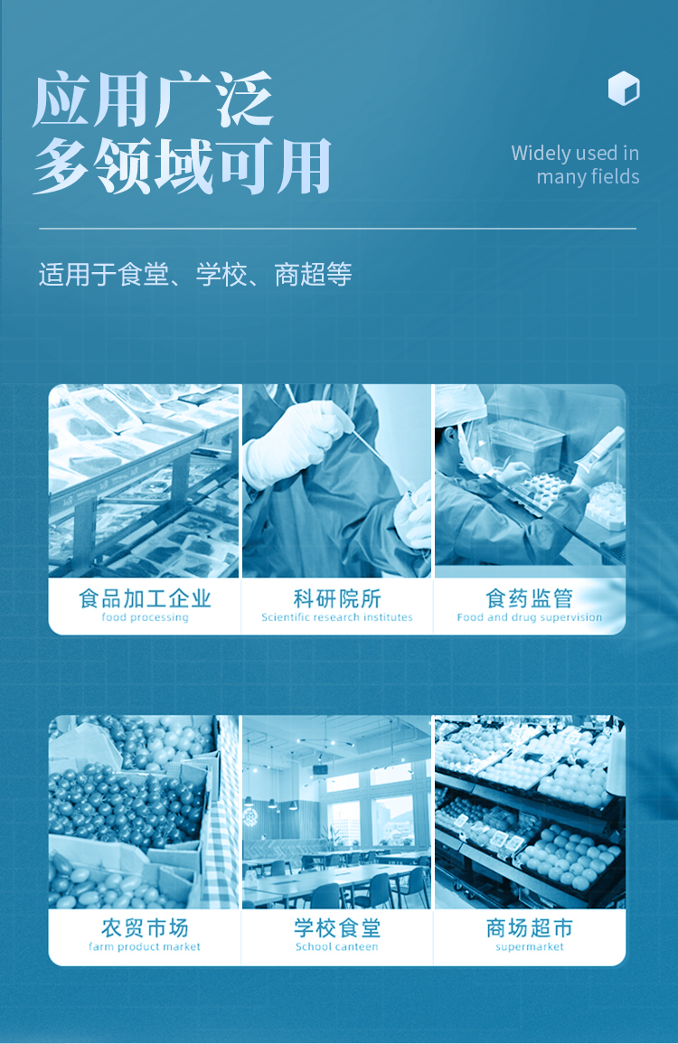 山東云唐智能科技有限公司生產(chǎn)的農(nóng)藥殘留檢測儀廣泛應(yīng)用于主要用于蔬菜、水果、茶葉、糧食、農(nóng)副產(chǎn)品等食品中農(nóng)藥殘留的快速檢測,依據(jù)國標(biāo)GB/T5009.199-2003進(jìn)行檢測,適用于果蔬茶生產(chǎn)基地以及農(nóng)貿(mào)批發(fā)銷售市場現(xiàn)場檢測,餐館、學(xué)校、食堂、家庭果蔬加工前的安全速測等。