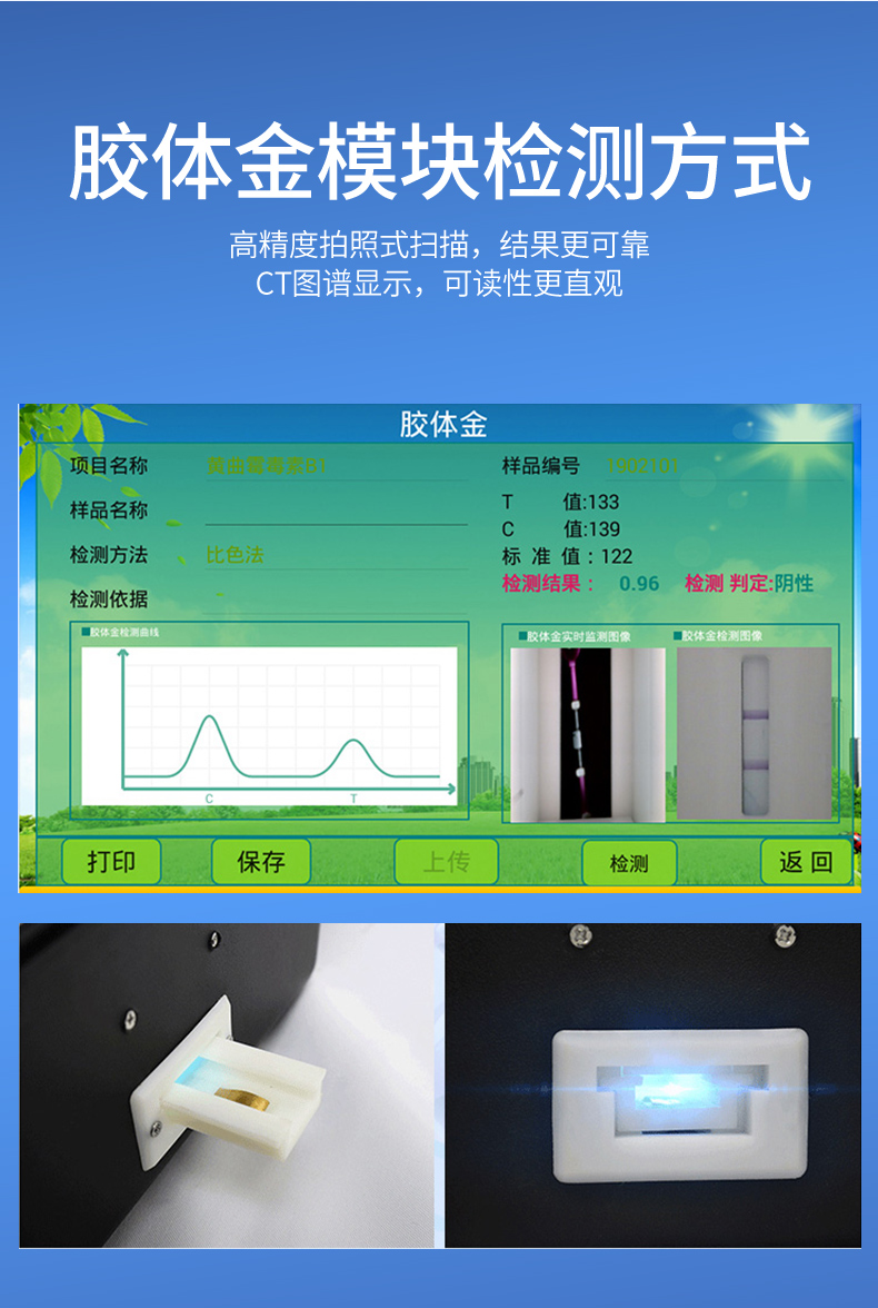 膠體金模塊檢測(cè)方式:軌道式自動(dòng)傳輸掃描,檢測(cè)完成后自動(dòng)退出試紙。