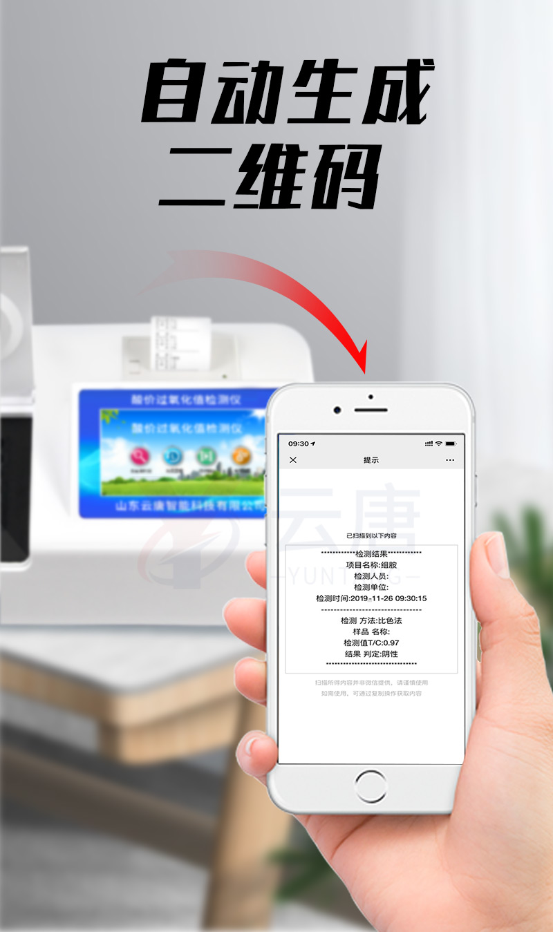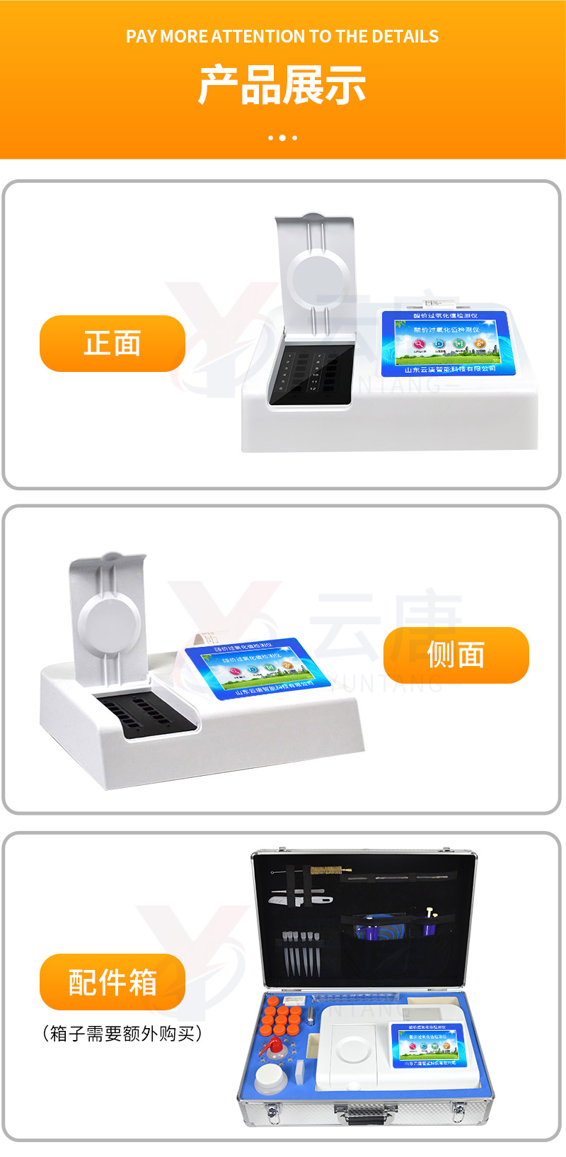 | 儀器采用臺式一體化系統(tǒng)檢測技術(shù),將分光光度模塊、新型農(nóng)殘檢測模塊、數(shù)字化管理模塊、無線通訊模塊高度集成于一體,支持檢測200種食品安全檢測項目,同時預(yù)留升級檢測方法。 | 儀器檢測模塊標(biāo)準(zhǔn)化、智能化,可隨意自由組合。檢測箱體內(nèi)置多個標(biāo)準(zhǔn)檢測單元,檢測模塊可以調(diào)整配置。 | 儀器采用全新安卓智能系統(tǒng),主控芯片采用 ARM Cortex-A7,RK3288/4核處理器,10.1寸高清液晶觸摸豎屏,更加**的UI交互界面,運轉(zhuǎn)快捷;儀器配備無線通信模塊: 4G(APN)通訊模塊、Wifi模塊,藍(lán)牙傳輸,同時具有雙USB接口以及RJ45接口能以多種方式實現(xiàn)數(shù)據(jù)保存和數(shù)據(jù)傳輸功能。 | 創(chuàng)新檢測模式: | ★檢測通道:≥12通道;采用精密旋轉(zhuǎn)比色池設(shè)計,使用同芯片同光源校準(zhǔn)精度,解決不同光源之間的誤差值。1-12通道間誤差0.1%。(***:**202022821055.2) | ★儀器具有自動識別比色皿檢測功能,即:將樣品比色皿放入儀器后,點擊樣品檢測,儀器自動識別比色皿進(jìn)行通道檢測。 | 進(jìn)口高精光源: | 高精度進(jìn)口四波長冷光源,通道配置 410、520、590、630nm 波長光源,一個光源芯片驅(qū)動一個光源,誤差極小,每臺設(shè)備單獨**校準(zhǔn)光源,**比對,同時參照四種不同波段光源全方位覆蓋市面上99%的農(nóng)殘食品項目檢測。 | 智能化操作系統(tǒng): | 便捷操作系統(tǒng):設(shè)備檢測時可在同一檢測界面自動對應(yīng)相關(guān)檢測通道一次性選擇1-12個樣品名稱,無須退出界面,節(jié)省操作時間。 | 數(shù)據(jù)集成系統(tǒng):設(shè)備首頁自動統(tǒng)計檢測數(shù)據(jù)包含:周檢測數(shù)據(jù)、月檢測數(shù)據(jù),全部檢測總數(shù)量,均包含檢測總數(shù),合格數(shù),不合格數(shù),以及相關(guān)柱形分析圖,對各項檢測數(shù)據(jù)清晰掌握,無需電腦查詢,更加快捷直觀。 | 項目預(yù)設(shè)系統(tǒng):支持添加單個及多個相同或不相同的任務(wù)預(yù)設(shè),一鍵快速調(diào)取,每一個任務(wù)分別可以設(shè)置不同的樣品、批次、編號、來源、備注、抽樣信息、檢測信息、受檢信息、復(fù)核信息等更多信息。無縫鏈接平臺和APP實時查看下發(fā)任務(wù)。 | 數(shù)據(jù)監(jiān)管系統(tǒng):同步對接監(jiān)管平臺,數(shù)據(jù)可局域網(wǎng)和互聯(lián)網(wǎng)數(shù)據(jù)上傳,檢測結(jié)果可選擇直接傳至食品安全監(jiān)管平臺。集成OSS輸出存儲服務(wù)、區(qū)分設(shè)備定向管理應(yīng)用,進(jìn)行區(qū)域食品安全監(jiān)管及大數(shù)據(jù)分析處理與數(shù)據(jù)統(tǒng)計,檢測區(qū)域食品安全長短期動態(tài),達(dá)到食品安全問題預(yù)估、預(yù)警。 | 自定義打印系統(tǒng):內(nèi)置全新打印系統(tǒng),新創(chuàng)自定義打印方式,可按需靈活設(shè)置開啟或關(guān)閉:產(chǎn)品合格證(國家農(nóng)業(yè)部標(biāo)準(zhǔn)要求),二維碼,抽樣信息、檢測信息,受檢信息、復(fù)核信息、抽樣日期、檢測日期等信息的打印。 | 系統(tǒng)遠(yuǎn)程更新功能:可定向分客戶分儀器更新系統(tǒng),按照不同客戶后期實際需求添加項目,無需機器返廠,即可遠(yuǎn)程實時升級全新系統(tǒng),節(jié)省時間成本及避免運輸造成設(shè)備損壞。 | 儀器主機采用一體化防水、抗壓、防撞擊、防腐蝕箱體設(shè)計,同時配備交直流供電,可連接車載電源,可選配大容量充電鋰電池,滿足現(xiàn)場野外檢測需求。 | 安全證書,放心保障:儀器具有中國計量科學(xué)研究院校準(zhǔn)證書,權(quán)威認(rèn)證。 |
