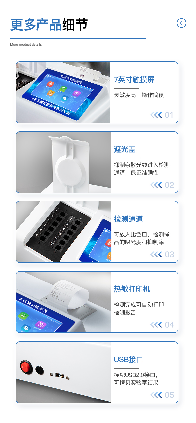 可快速檢測病害肉中揮發(fā)性鹽基氮,儀器預(yù)留其他項目檢測程序和端口,根據(jù)日后需求可方便的自主增加檢測項目。