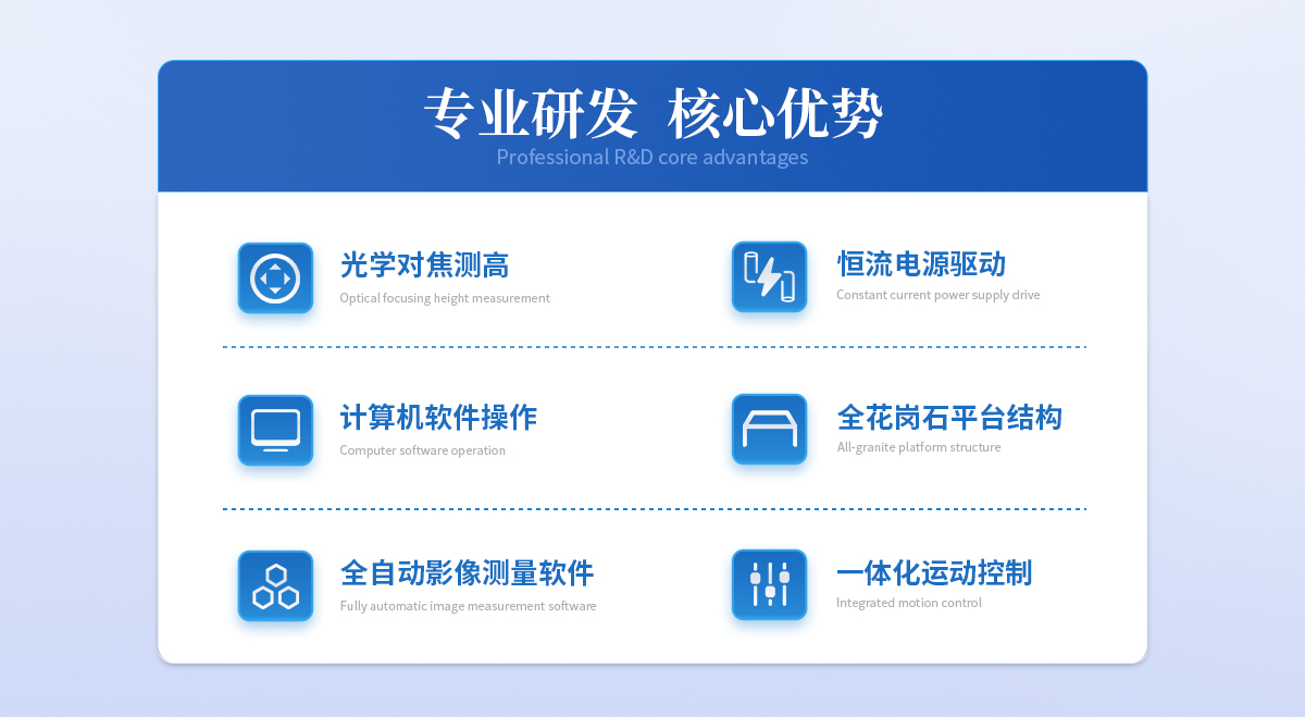 | 1、智慧燈光:鼠標(biāo)單擊對(duì)應(yīng)的圖標(biāo),軟件自動(dòng)調(diào)節(jié)合適的燈光亮度。使用過(guò)程中方便、**。 | 2、測(cè)量宏功能:將一連串的測(cè)量構(gòu)造命令關(guān)聯(lián)到一個(gè)按鈕上,點(diǎn)擊按鈕,即開(kāi)始執(zhí)行宏測(cè)量功能,宏測(cè)量功能會(huì)自動(dòng)完成構(gòu)造動(dòng)作,減少用戶(hù)操作鼠標(biāo)次數(shù),提高工作效率。 | 3、導(dǎo)入CAD圖紙測(cè)量:設(shè)置跟圖紙一致的坐標(biāo)系,調(diào)節(jié)好燈光,導(dǎo)入圖紙及完成編程步驟。對(duì)于平面尺寸測(cè)量非常**。 | 4、計(jì)算器功能:測(cè)量過(guò)程中會(huì)遇到不能直接通過(guò)測(cè)量得出的數(shù)據(jù)。軟件這里提供了一些基本表達(dá)式:絕對(duì)值、三角函數(shù)、反三角函數(shù)、平均值、**值、*小值、開(kāi)平方、iF表達(dá)式等。 | 5、SPC功能:專(zhuān)業(yè)的 SPC 軟件,測(cè)量軟件和SPC 軟件無(wú)縫鏈接, 自動(dòng)將數(shù)據(jù)導(dǎo)入 SPC 數(shù)據(jù)庫(kù),其圖 表及數(shù)據(jù)可打印和導(dǎo)入到 EXCEL 表格 | 6、3D測(cè)量功能:需加裝選配探針或點(diǎn)激光 |