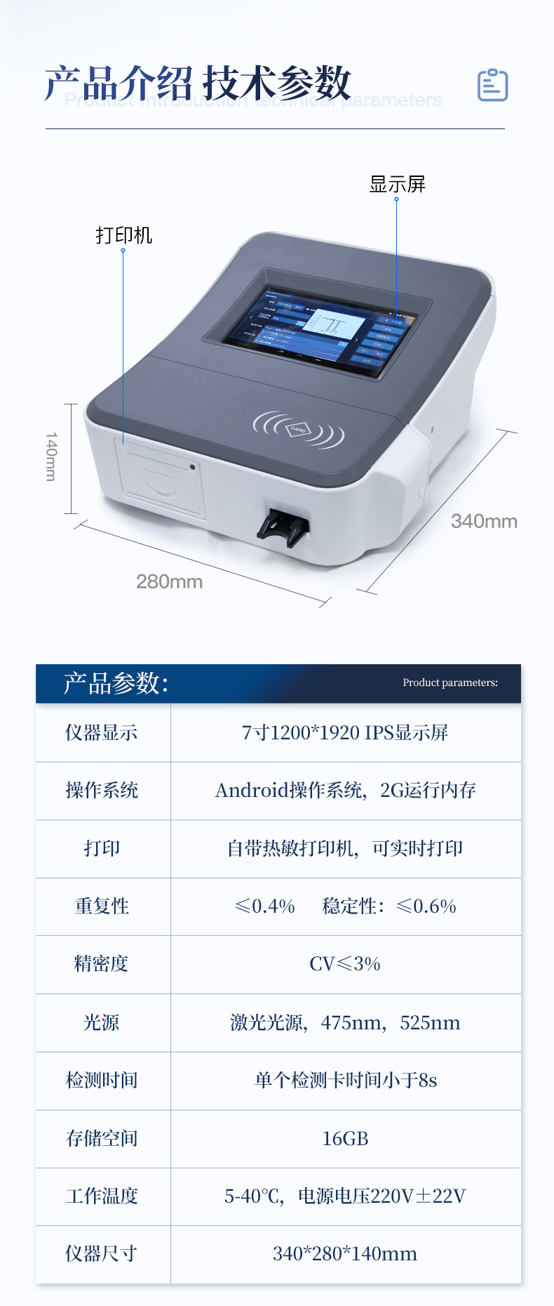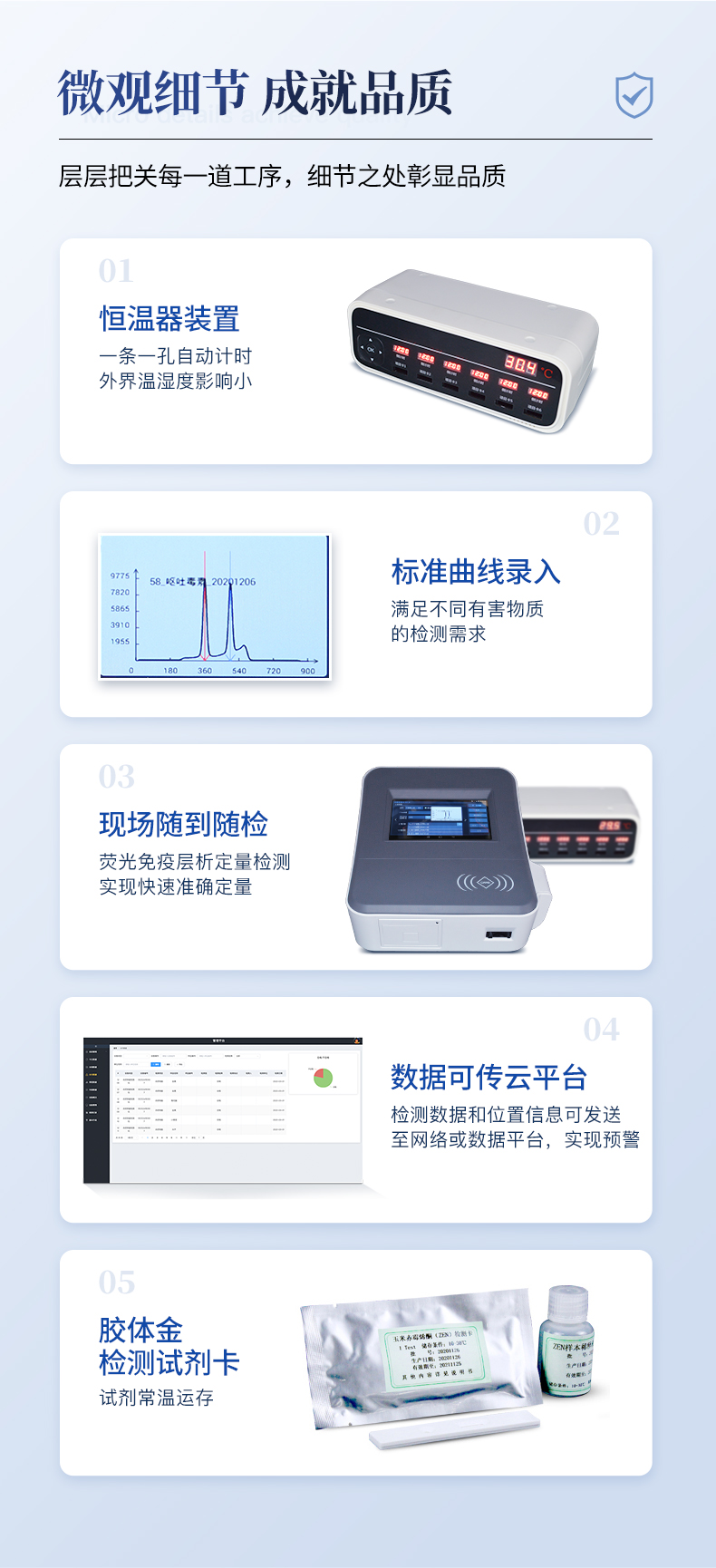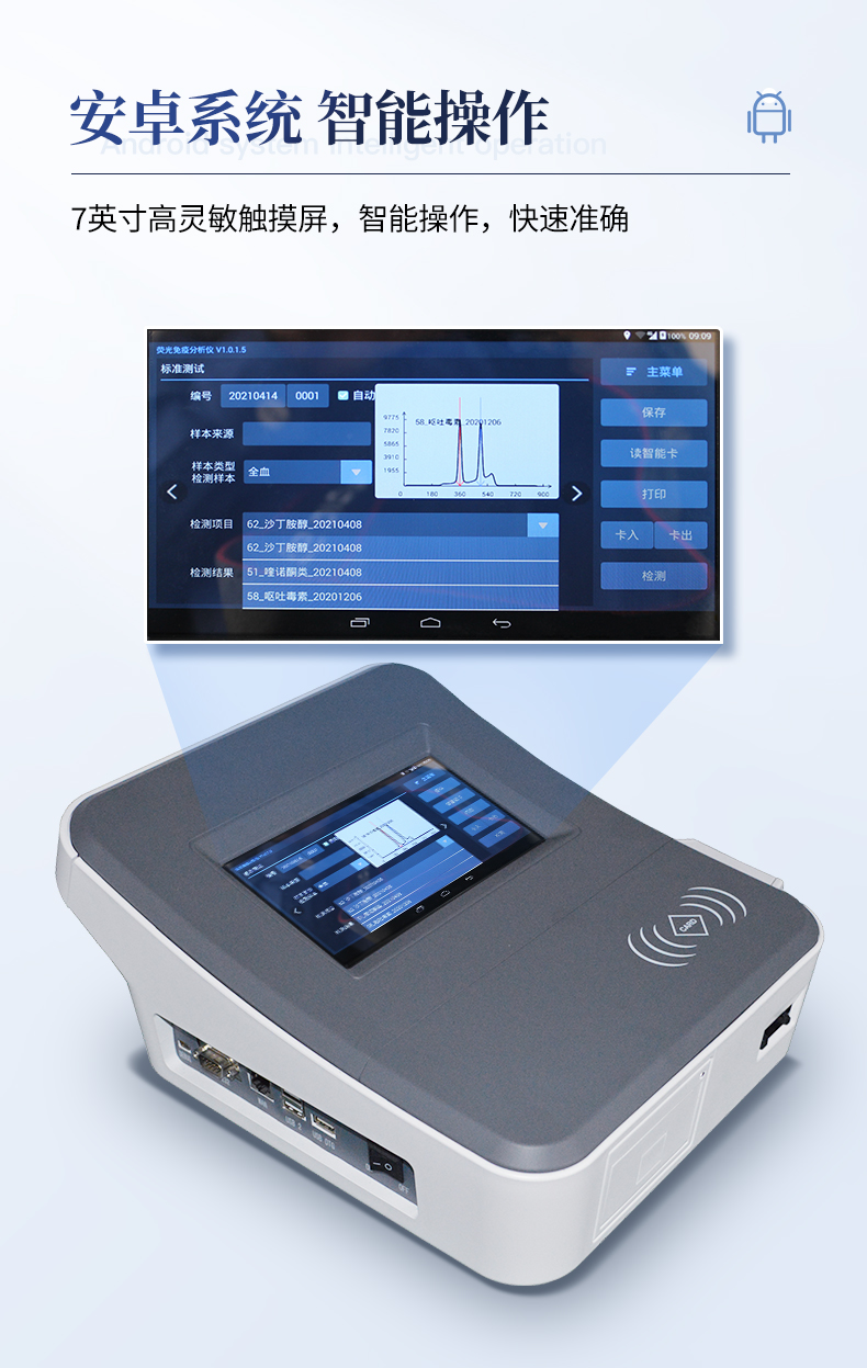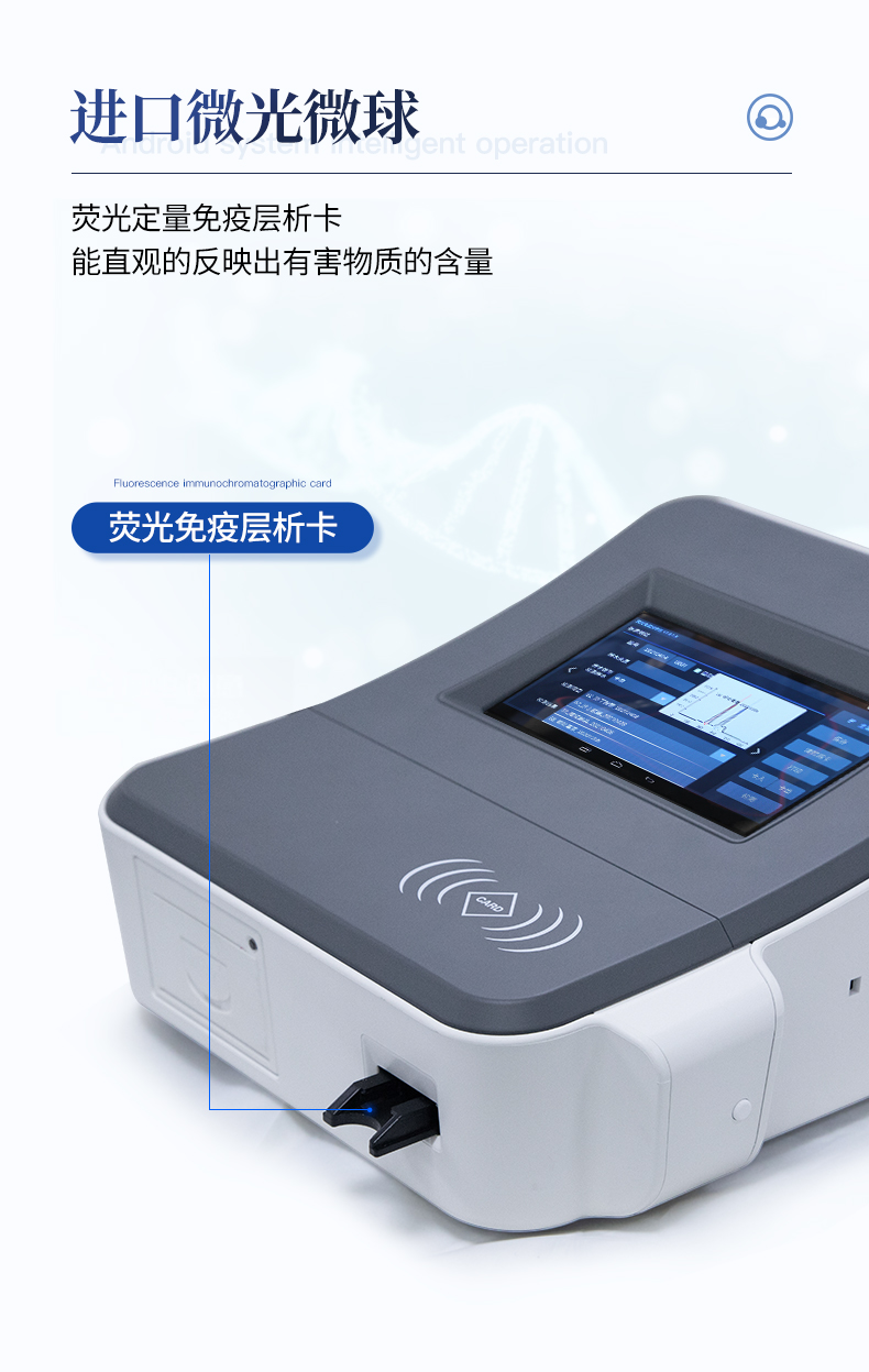 | 1、儀器自動識別檢測卡條形碼上的檢測項目、樣本類型、檢測限、標(biāo)準(zhǔn)曲線,形成完整的檢測數(shù)據(jù)信息鏈。一卡一控,插卡后儀器自動讀取檢測卡顯示的C、T線的熒光信號,依據(jù)檢測卡內(nèi)置的標(biāo)準(zhǔn)曲線,自動計算結(jié)果;用戶可根據(jù)自身需求,選擇設(shè)定檢測限/定量限(內(nèi)控或國家標(biāo)準(zhǔn)限量)。 | 2、檢測數(shù)據(jù)信息采集項目(包括但不限于):儀器至少支持以下檢測數(shù)據(jù)采集:①檢測項目;②樣本類型;③檢測樣本;④國家限量;⑤檢測者;⑥檢測單位;⑦檢測時間;⑧檢測線/定量限;⑨檢測編號;⑩內(nèi)控限量 樣本來源等,并支持?jǐn)?shù)據(jù)采集項目遠(yuǎn)程擴(kuò)展升級。 | 3、檢測數(shù)據(jù)采集方式:檢測數(shù)據(jù)信息采集項目中載明的:①-⑨項為儀器自動識別采集,⑩項為手寫輸入。 | 4、檢測數(shù)據(jù)上傳方式:完成檢測后,儀器能自動將檢測數(shù)據(jù)信息采集項目載明的全部檢測數(shù)據(jù)信息上傳至檢測監(jiān)管系統(tǒng)平臺。 | 5、接口:藍(lán)牙通訊接口;內(nèi)置無線WIFI,檢測數(shù)據(jù)實時傳輸?shù)綌?shù)據(jù)監(jiān)管平臺,客戶可通過賬號登陸在網(wǎng)絡(luò)上實時查看檢測數(shù)據(jù) | 6、存儲空間:存儲空間16GB。 | 7、信息輸入:支持中英文手寫輸入。 | 8、本機(jī)數(shù)據(jù)管理:具有檢測數(shù)據(jù)存儲、查詢,批量數(shù)據(jù)刪除和打印等功能。 | 9、檢測項目管理:儀器支持檢測項目及對應(yīng)國家限量遠(yuǎn)程增加、刪除等維護(hù)管理。 | 10、操作權(quán)限管理:儀器支持檢測操作人員使用賬號、密碼登陸儀器的功能,支持賬號、密碼在監(jiān)管系統(tǒng)平臺進(jìn)行驗證。 | 11、在線學(xué)習(xí):內(nèi)置檢測項目操作流程簡圖,教學(xué)軟件可實時在線更新。 | 12、工作溫度:5-40℃,相對濕度:10%-90%。電源電壓220V±22V,頻率50Hz±1Hz,額定功率40W,與電源的連接方式:可拆卸電源線。 | 13、恒溫孵育器 | (1)適用于定量膠體金試紙卡和反應(yīng)液體準(zhǔn)確控溫反應(yīng),以提高準(zhǔn)確性; | (2)孵育器卡槽數(shù)6個,每個卡槽時間獨立控制; | (3)插入卡條后自動倒計時,倒計時結(jié)束自動報警,并記錄超時時間; | (4)內(nèi)部恒溫控制,控溫溫度:37℃,控溫精度≤0.5℃,升溫速度≤8min,溫度均勻性≤0.3℃,實時溫度顯示精度:0.1℃。 |