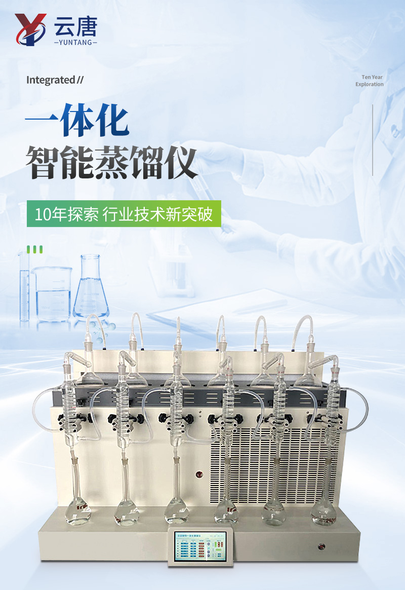 YT-**6智能一體化蒸餾儀是根據(jù)實驗室蒸餾預處理操作規(guī)程,集恒溫加熱、蒸餾終點自動控制、冷卻水循環(huán)于一體的新型智能蒸餾處理裝置。
