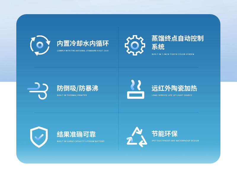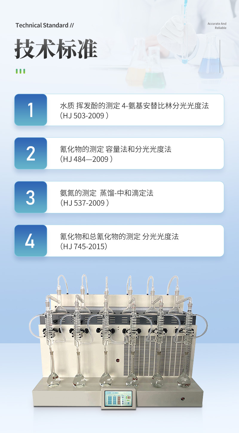 該儀器實驗了控溫、自動防倒吸、加熱均勻、防止暴沸、智能終點控制等功能。使用方便,節(jié)能環(huán)保。經(jīng)過實驗室蒸餾回收率比對驗證,結果準確,回收率達95%以上。該儀器可廣泛適用于環(huán)保、疾控、水產(chǎn)、供排水、高校、科研院所、廠礦企業(yè)等各類化學實驗室需要蒸餾處理的場所,如揮發(fā)酚、氨氮、凱氏氮油中水分等項目的蒸餾處理。